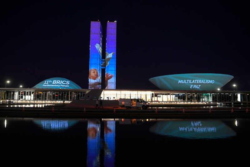 Junho 2025 – Palácio do Congresso Nacional recebe projeção mapeada especial para celebrar o 11º Fórum Parlamentar do Brics – Brasil 2025. Foto: Jonas Pereira/Agência Senado